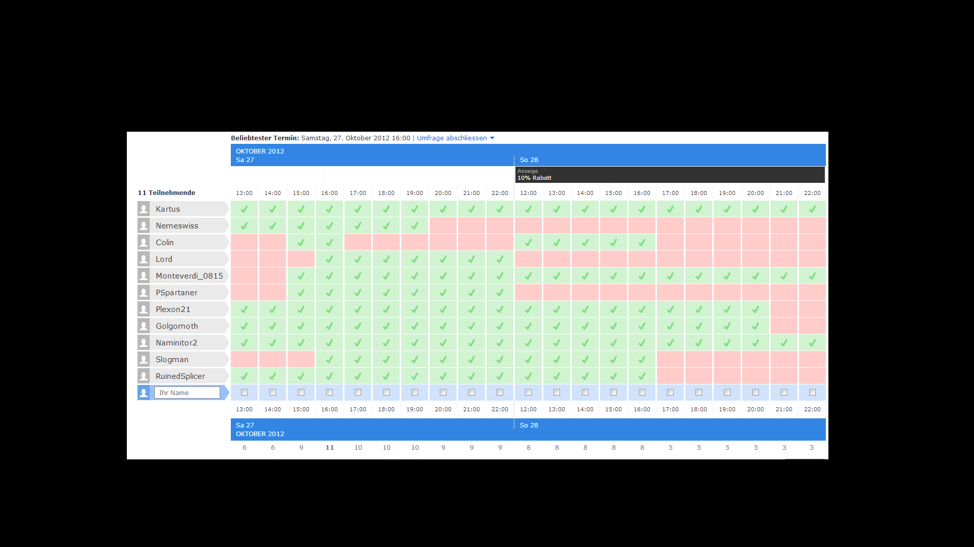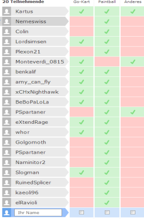 WHOR, bitte Ergebnis Screenshot vom "> Doodle Event abstimmen <" hier posten.